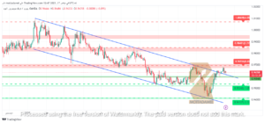 الزوج كان فى اتجاه هابط الى ان وصل الى الدعم 0.8600 والتى اوقفت هبوط الزوج وعاد للصعود لاختراق المقاومة 0.8800 مع اختراق خط الاتجاه الهابط للاعلى ويتبقى اختراق مستوى المقاومة 0.8910 ليبدء الزوج اتجاه صاعد جديد على المدى القصير