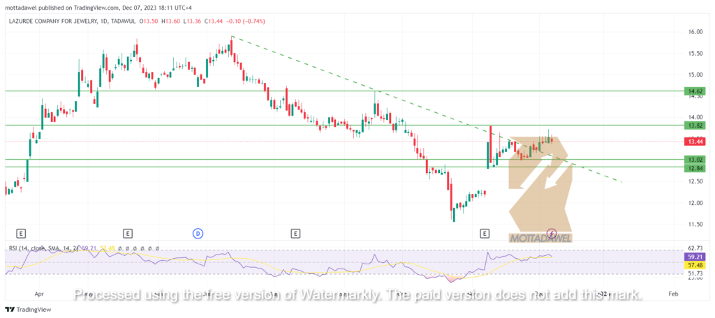 التحليل الفنى سهم لازوردى 4011استطاع السهم اختراق خط اتجاه هابط للاعلى ويختبر المقاومة 13.80 اذا تم اختراقها يستمر الصعود الى المقاومة 14.60 اما التصحيح من 13.80 اعادة اختبار الدعم 13.00 و ستكون فرصة للشراء المقالة السابقة التحليل الفنى سهم بدجت 4260 المقالة التالية التحليل الفنى سهم انابيب السعودية 1320 اترك ردّاًإلغاء الردلن يتم نشر عنوان بريدك الإلكتروني. الحقول الإلزامية مشار إليها بـ * الاسم * البريد الإلكتروني * الموقع أضف تعليقًا *Save my name, email and website in this browser for the next time I comment.إرسال التعليق