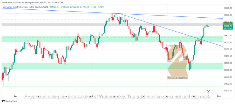 التحليل الفنى مؤشر الداوجونز مازال المؤشر فى اجاه صاعد قصير المدى يختبر المؤشر الان مستوى المقاومة 35000 والتى اذا تم اختراقها للاعلى يستهدف المؤشر صعودا…