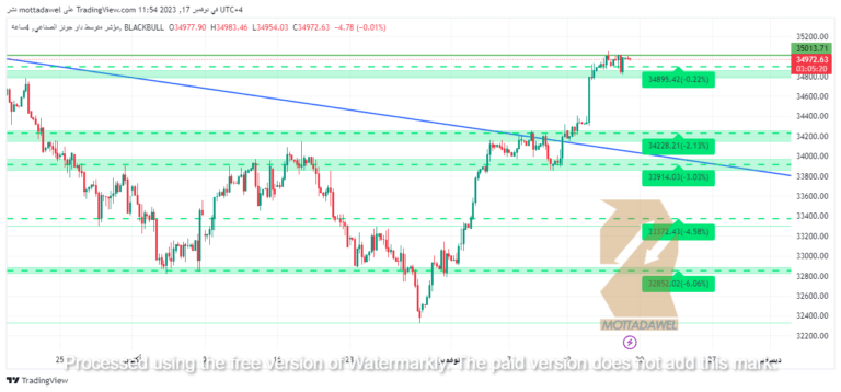تحليل مؤشر الداو جونز فى التداولات الاخيرة استطاع المؤشر اختراق خط الاتجاه الهابط للاعلى واختراق المقاومة 34200 للاعلى والاغلاق اعلها ليستمر صعود المؤشر الى المقاومة…