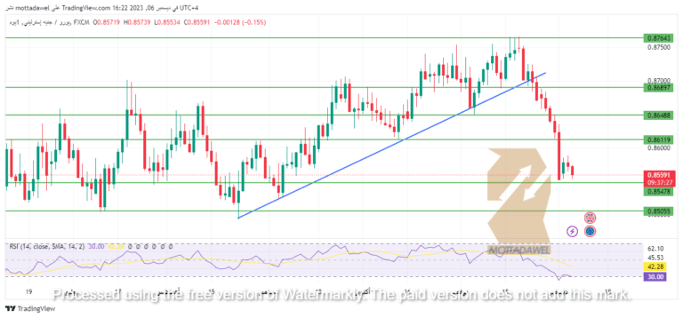 التحليل الفنى اليورو باوند تغير اتجاه الزوج من صاعد الى هابط على المدى القصير بعد اختبار المقاومة 0.8770 والتى هبطت منها الاسعار وتم كسر خط…